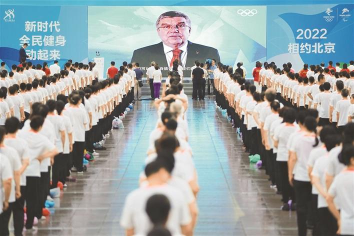 当天的活动现场,2022名机关干部、企业职工、社区居民表演了第九套广播体操,展现了广大北京市民喜迎冬奥会的热切心情。