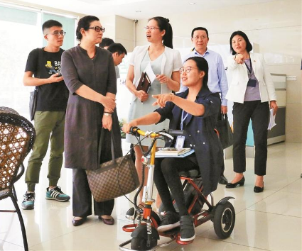 张莹莹(使用代步车者)向市残联领导介绍龙华区残障就业创业孵化基地。 2018年10月24日,对张莹莹来说是毕生难忘的一天。这天上午,习近平总书记走进龙华区民治街道北站社区党群服务中心了解居民生活。正在社区图书馆查阅资料的张莹莹成为了当天和习近平总书记交流的唯一一名残疾人。 如今回想起来,张莹莹内心依然充满激动。“习近平总书记用‘残疾人朋友’称呼我们,这种感觉特别暖心。他还特别关心我们的生活现状,从居住到就业,问得很仔细。”昨日,深晚记者跟随深圳市残联一行来到民治街道综合(职业)康复服务中心,见到张莹莹,了解深圳残疾人就业生活。 5岁时,张莹莹因小儿麻痹症落下了腿疾,行动不便,长期与轮椅为伴。24日下午,张莹莹正巧在图书馆查阅资料。“看到习近平总书记走进来,大家都感到十分意外和惊喜。”习近平总书记走到张莹莹面前不仅跟她握手问好,还亲切询问她的日常生活和工作情况。张莹莹告诉习近平总书记,政府部门和企业单位都有针对残疾人就业的帮扶计划,为残疾人融入社会提供便利,同时对残疾人在衣食住行等方面都给予了极大的照顾,仅她居住的龙悦居保障房就有300多户残疾人,而且屋内都配备了齐全的无障碍设施。 得知张莹莹现在从事帮助残疾人士就业的工作,习近平总书记仔细询问就业渠道有哪些,有多少人受益等。张莹莹表示,该中心是非营利性社会组织,承接了政府项目,通过开展培训、与企业对接等,多元化帮助残疾人平等参与社会生活。 “习近平总书记称赞我们多元化就业模式做得好,给了我们极大的鼓舞。”张莹莹告诉记者,自己负责运营的深圳市雨燕残疾人关爱事业发展中心三个月前落地民治街道综合(职业)康复服务中心。告别曾经狭窄的办公环境,搬进政府免费提供的1000多平方米的全功能孵化基地,让张莹莹对自己的创业充满热情。“习近平总书记的关心让我坚定自己的创业信心,帮助更多残疾人实现就业是我最大的心愿。”张莹莹告诉记者,截至目前,该中心已经帮助全国2000多名残疾人成功就业,包括中国移动话务员、电脑图片处理等多个居家就业岗位。 |
